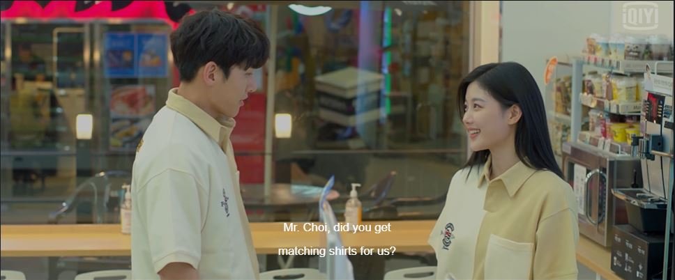 Entering the store to replace Saet Byul, Dae Hyun is happy to see her wiping her name tag. He curiously asks if she intentionally applied to be a part-timer or if it was just a chance.